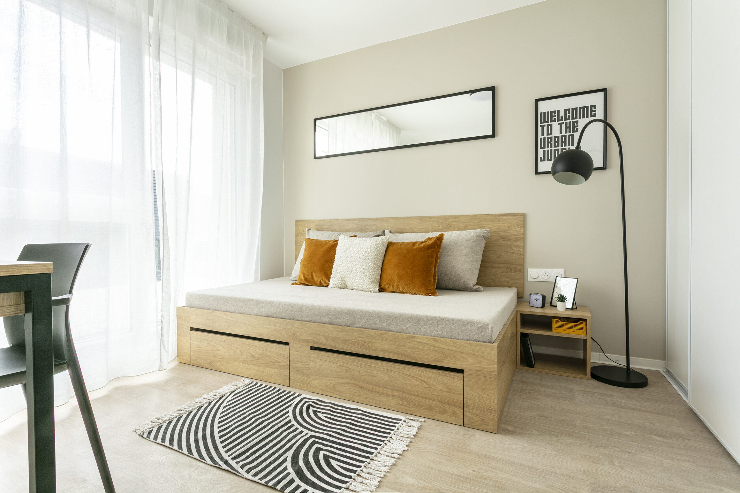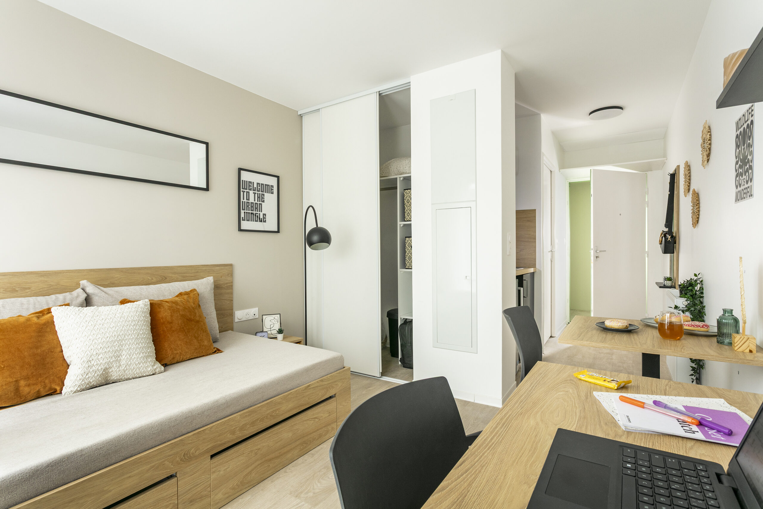 Ses studios offrent confort et quiétude à ses résidents.
