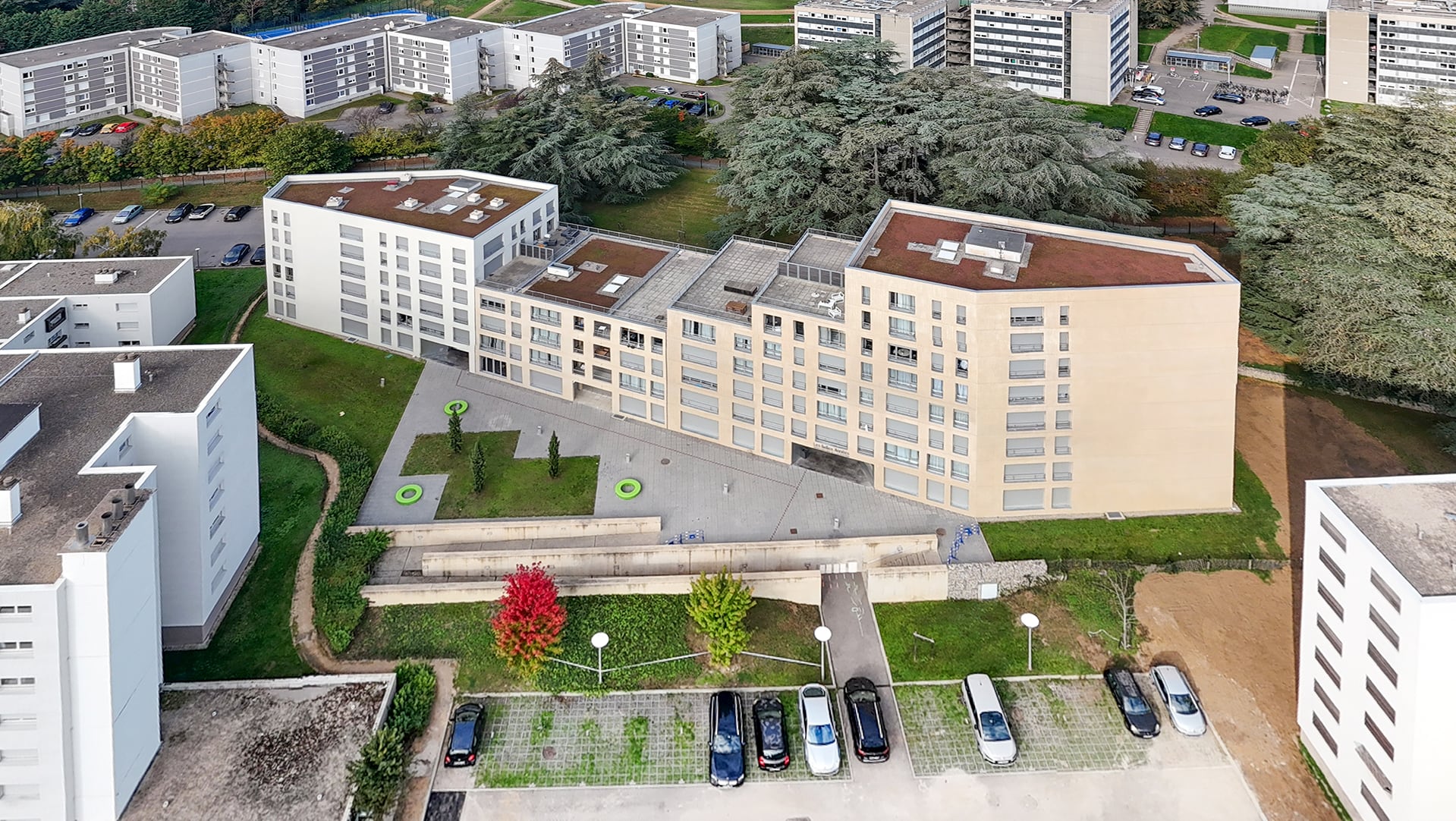 Cette résidence étudiante à Ecully propose des studios et des appartements type T2.